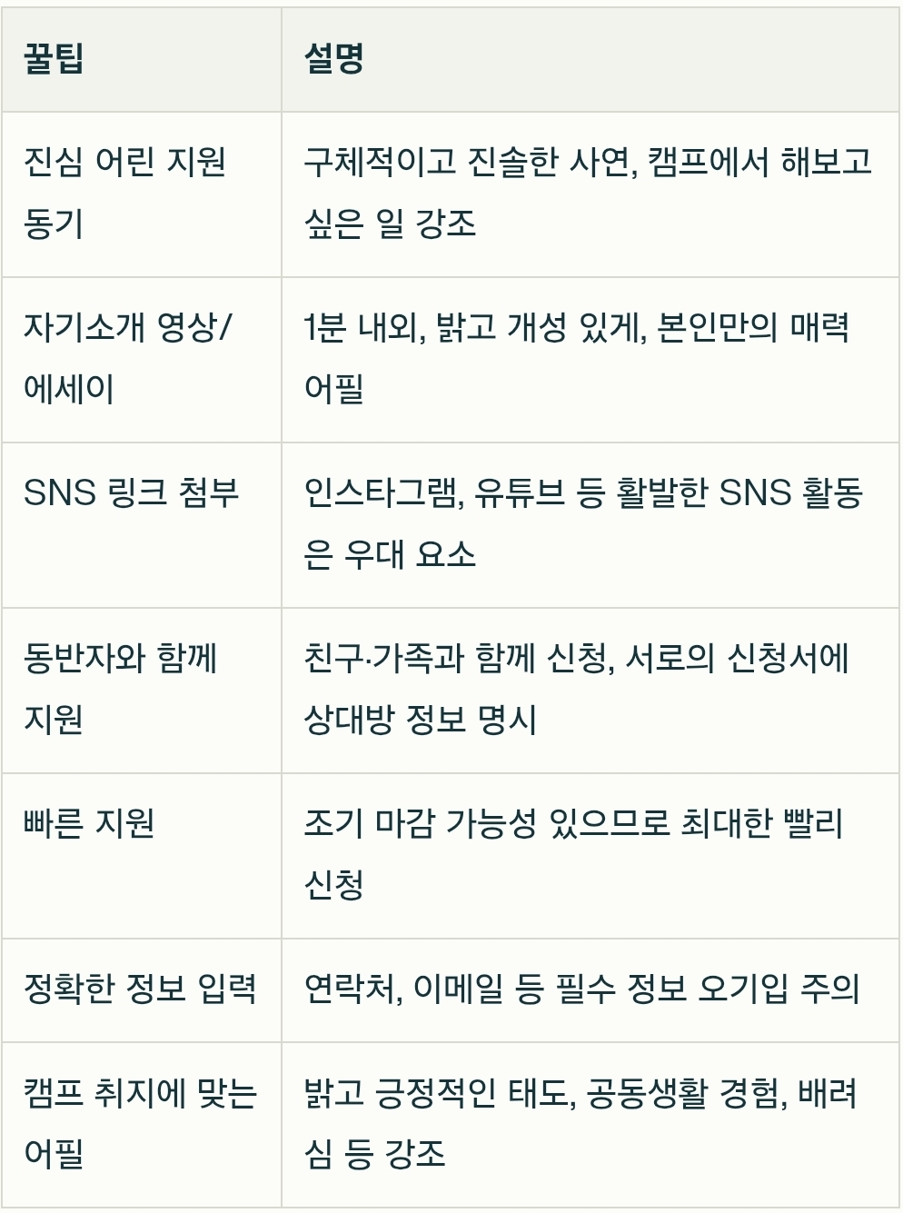 이 꿀팁을 참고해 지원서를 준비하면 유재석 캠프 당첨 확률을 한층 높일 수 있습니다.